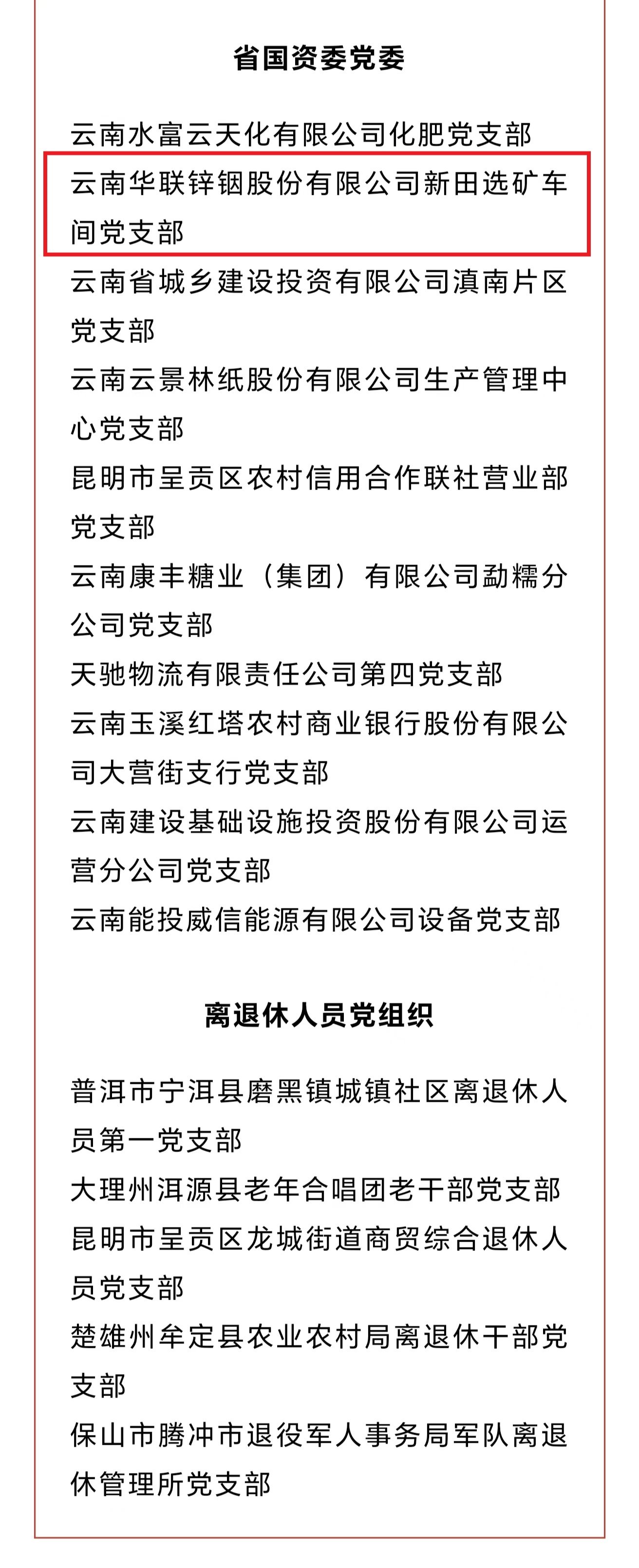近日,中共云南省委組織部發(fā)布了《關(guān)于命名2023年度“云嶺先鋒紅旗黨支部”的決定》,華聯(lián)鋅銦公司新田選礦車間黨支部榜上有名。
