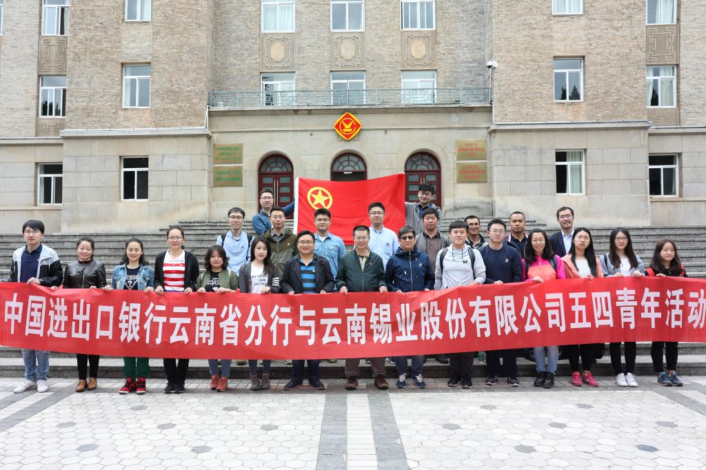 5月5日,中國(guó)進(jìn)出口銀行云南省分行黨委委員、行長(zhǎng)助理黃旭華率團(tuán)員青年,到錫業(yè)股份開(kāi)展“五.四”青年節(jié)“不忘初心跟黨走,牢記使命建新功”主題活動(dòng)。錫業(yè)股份黨委委員、工會(huì)主席李林、團(tuán)委書(shū)記王戰(zhàn)蒙及部分所屬單位團(tuán)委負(fù)責(zé)人熱情接待了來(lái)賓。
